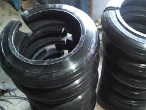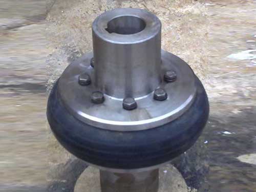 2、橡膠元件(輪胎體)與金屬壓板硫化粘結(jié)在一起,裝配時(shí)用螺栓直接與兩半聯(lián)軸器聯(lián)結(jié)。