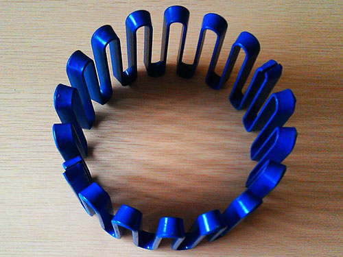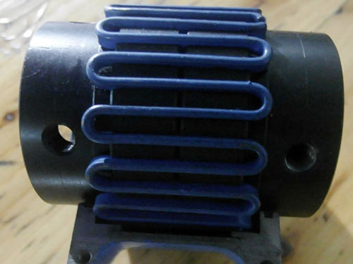 JSD型單法蘭聯(lián)接型聯(lián)軸器主要結構是由兩個半聯(lián)軸節(jié),兩個半外罩,兩個密封圈及蛇形彈簧片組成,它是靠蛇簧嵌入兩半聯(lián)軸節(jié)的齒槽內來傳遞扭矩,聯(lián)軸器以蛇形彈簧片嵌入兩個半聯(lián)軸節(jié)的齒槽內,來實現(xiàn)主動軸與從動軸的鏈接。運轉時,是靠主動端齒面對蛇簧的軸向作用力帶動從動端,來傳遞扭矩,如此在很大程度上避免了共振現(xiàn)象發(fā)生,且簧片在傳遞扭矩時所產生的彈性變量,使機械系統(tǒng)能獲得較好的減振效果,其平均減振率達36%以上。